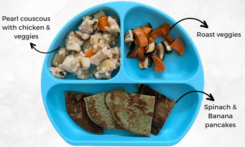 Chicken couscous + roast veg + pancakes