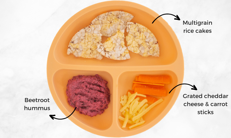 Beetroot Hummus + Rice Cakes + Cheese + Carrot