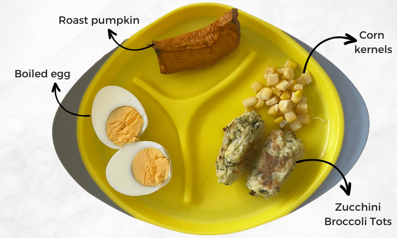 Zucchini Broccoli Tots + Egg + Pumpkin + Corn